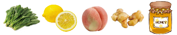 ほうれん草・レモン・桃・生姜・はちみつのグリーンスムージー