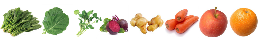 ほうれん草・ケール・クレソン・ビート・生姜・人参・リンゴ・オレンジのスムージー