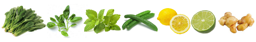 ほうれん草・バジル・ミント・きゅうり・レモン・ライム・生姜のレシピ