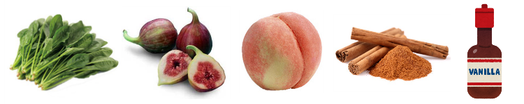 ほうれん草・イチジク・桃・シナモン・バニラエッセンスのレシピ
