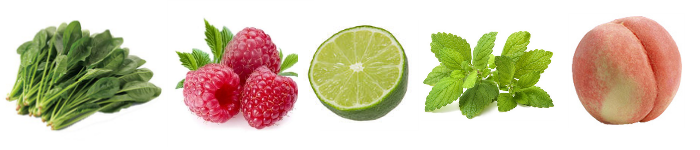 ほうれん草・ラズベリー・ライム・ミント・桃のグリーンスムージー