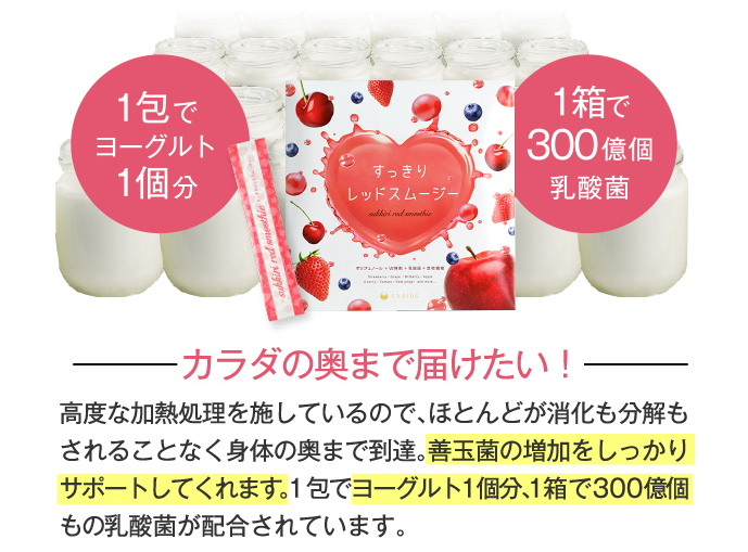 さすがは1包に10億個もの乳酸菌が入っているだけのことはあります。すっきりレッドスムージーの乳酸菌の力はあなどれないようです。