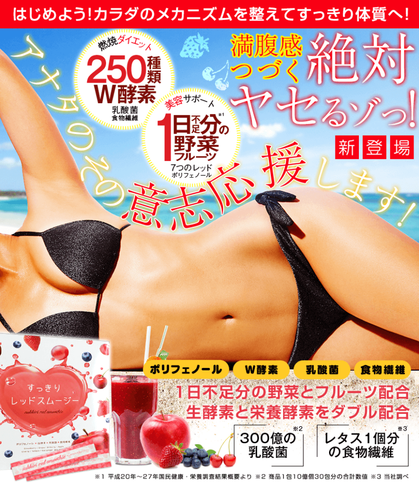 ネットの口コミでも「すっきりレッドスムージー」をダイエットに利用している方が多いだけあり、管理人もすっきりレッドスムージーのおかげで体重もぐーんと落ちて…