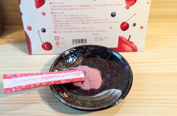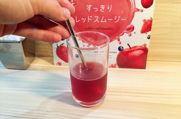 グリーンスムージーは材料に緑の葉野菜が入るので粉末のスムージーでも多少クセが残っているものが多いのですが、今回のすっきりレッドスムージーは見た目も可愛くて美味しそうなのに、それに加えてその見た目を裏切らない味にも驚かされました。