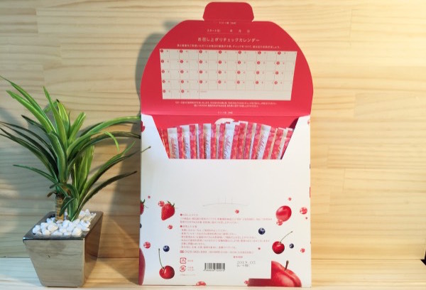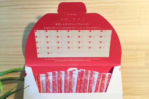 パッケージのフタの裏面には「お召し上がりチェックカレンダー」なるものがあります。どうやら飲んだ日にチェックを入れていくシステムのようです。ただ、飲むのを忘れたらチェックを入れるのを忘れてしまうのだからあまり意味はないように感じますが私だけでしょうか…。笑