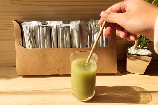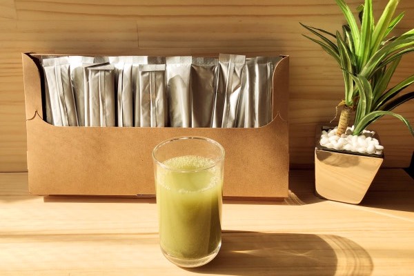 粉末自体は結構細かくて材料の繊維のようなものはありません。多くの粉末のスムージーの粉自体は抹茶っぽい香りがすることが多いのですが、このマジカルスムージーも同様に抹茶ぽい香りがします。ただ、マジカルスムージーは抹茶の香りだけでなく酸味を感じさせるフルーツ?的な香りもします。