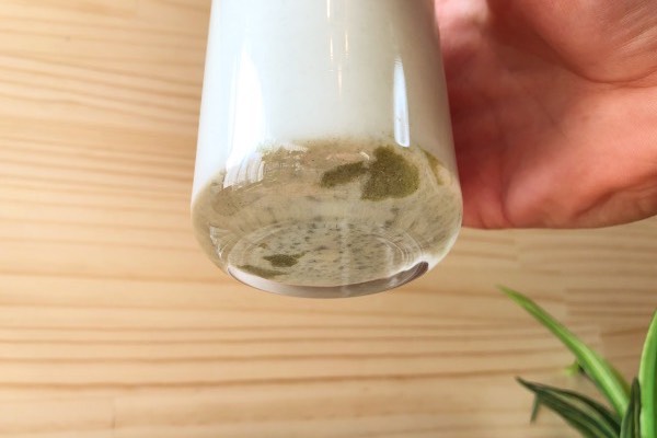30秒ほど混ぜただけでご覧の通り!ウォーターサーバーから出した冷たい水を使っていたのですが溶け残りはほとんどありません。
