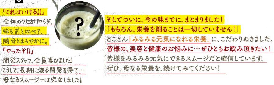 母なるスムージー効果はあるものの味に問題がありそう…