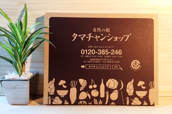 「タマチャンショップ」と書かれた厚さ数センチの平べったいダンボールが届きました!最近の通販はダンボールの見た目にもこだわりがある傾向がありますがタマチャンショップの箱には野菜や果物が描かれていますが特に可愛さは感じません。笑